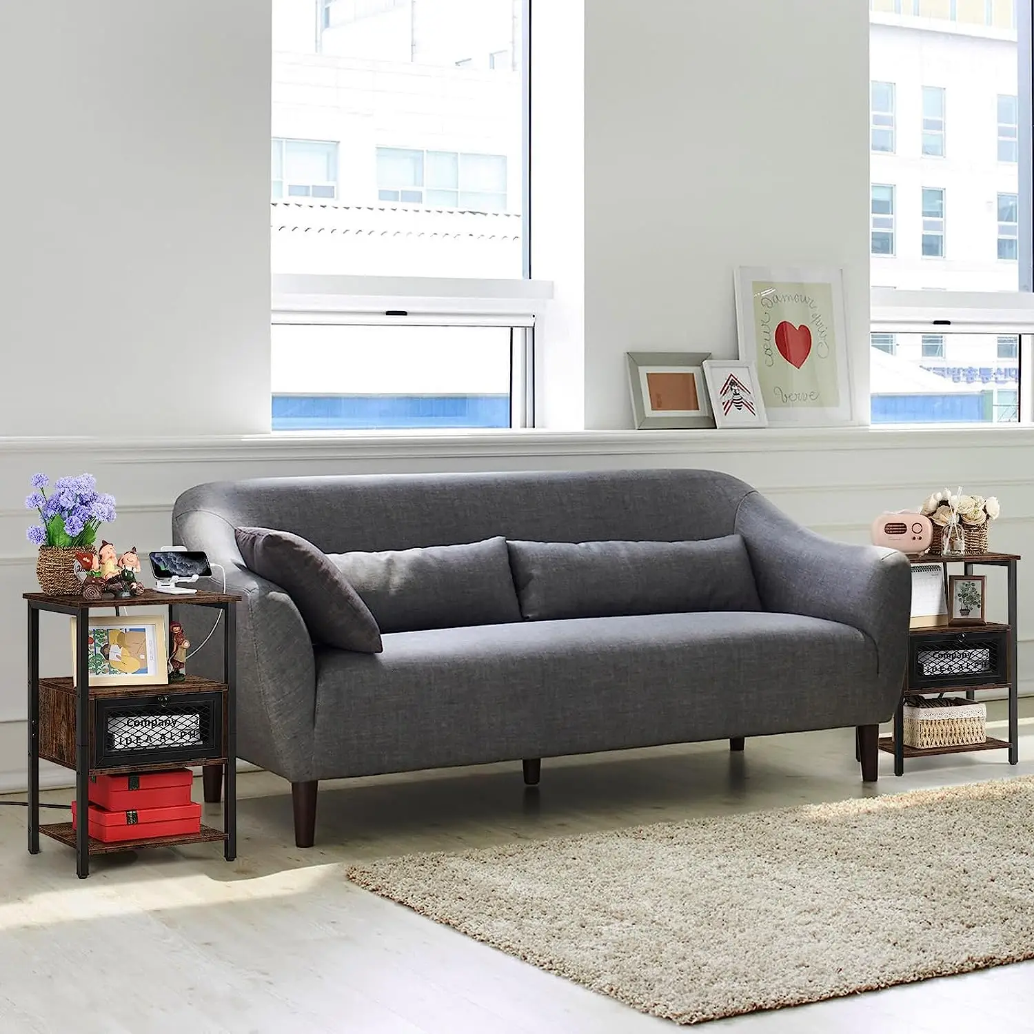 Industrial Night Stand: The bedside table with charging station adopts brown wood tone tabletop combined with black powder-coated metal frames. The additional adjustable feet are slip-resistant to prevent scratching the floor and keep balance. The living room side table exudes the charm of elegance and warmth, adds a unique personality, and an artistic aesthetic to your room.
